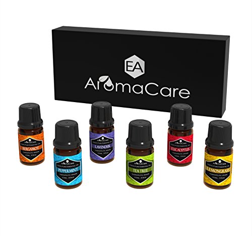 EA Aromacare Aromatherapy Essential Oils Gift Set, Therapeutic Grade, Guaranteed 100% Pure, (Lavender, Peppermint, Lemongrass, Tea Tree, Eucalyptus, Bergamot and E-book) Massage Essential Oils, Use in Essential Oil Diffuser, Perfect Essential Oils Ki