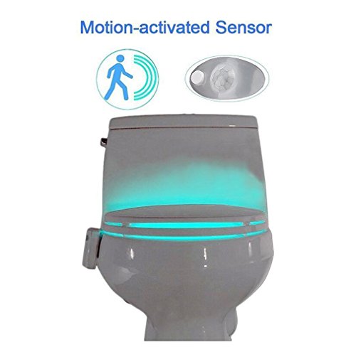-. Feature : MOTION ACTIVATED LED SENSOR:not have to turn on the lights to go to the bathroom at night when half asleep, it will not disturb your body sleeping clock. Only turns on when you walk into the bathroom in the dark. / EASY INSTALLATION: Quick and simple installation, fits any toilet in seconds.Need 3 AAA Batteries(NOT INCLUDED) / FITS ANY TOILET:Flexible rod can take the shape of any type toilet and stay in place. / EASY TO CLEAN,SAFETY TO USE:It is a smart and energy-efficient affordable device that make bathroom more modern, pleasant and easier.WATERPROOF DESIGN,make the light safe and long working life. / CUSTOMIZABLE LIGHT OPTIONS: Set to a single-color (8 color options) or automatically cycle through color; Beautify your bowl by matching it to your d¨¦cor.