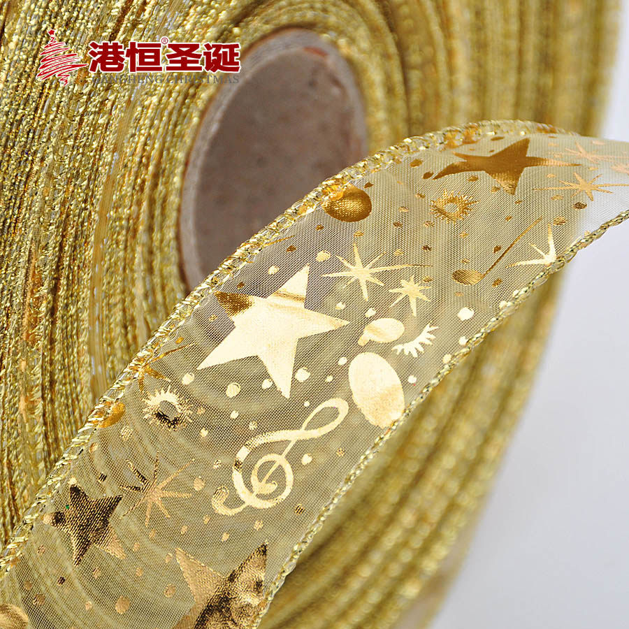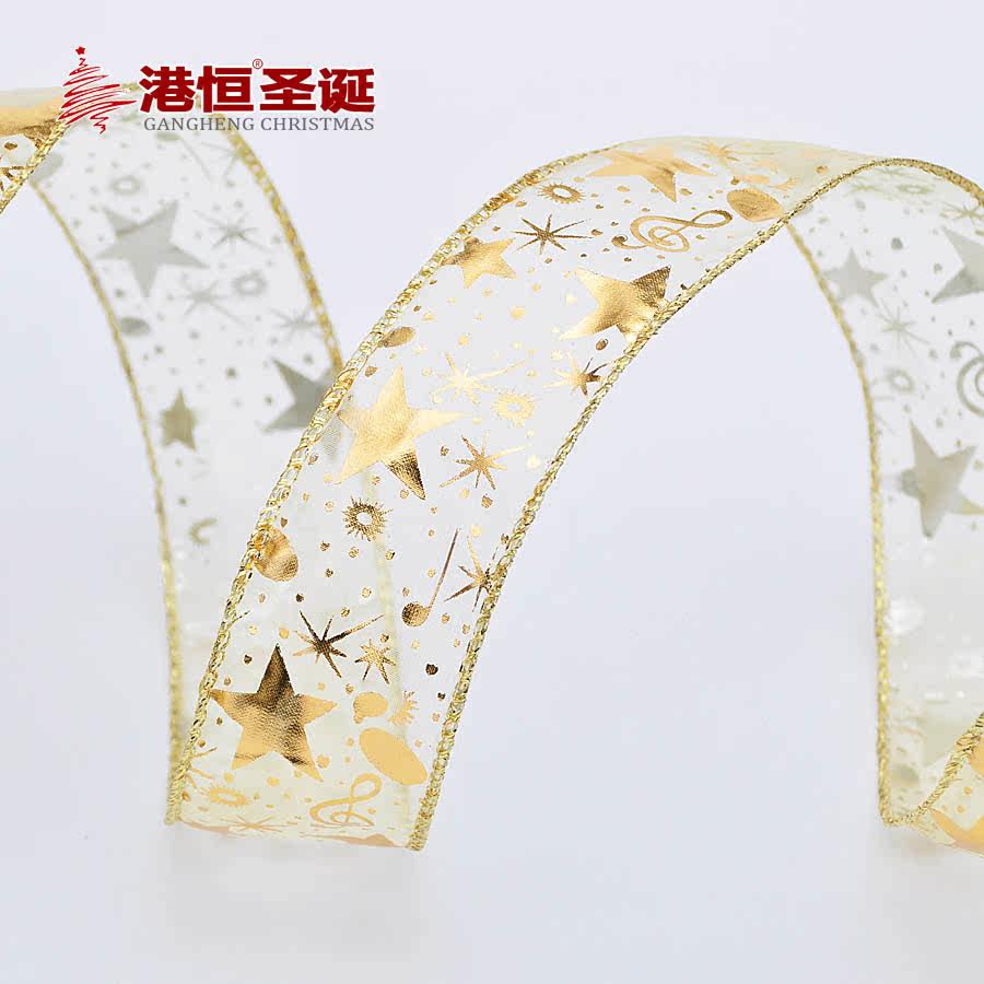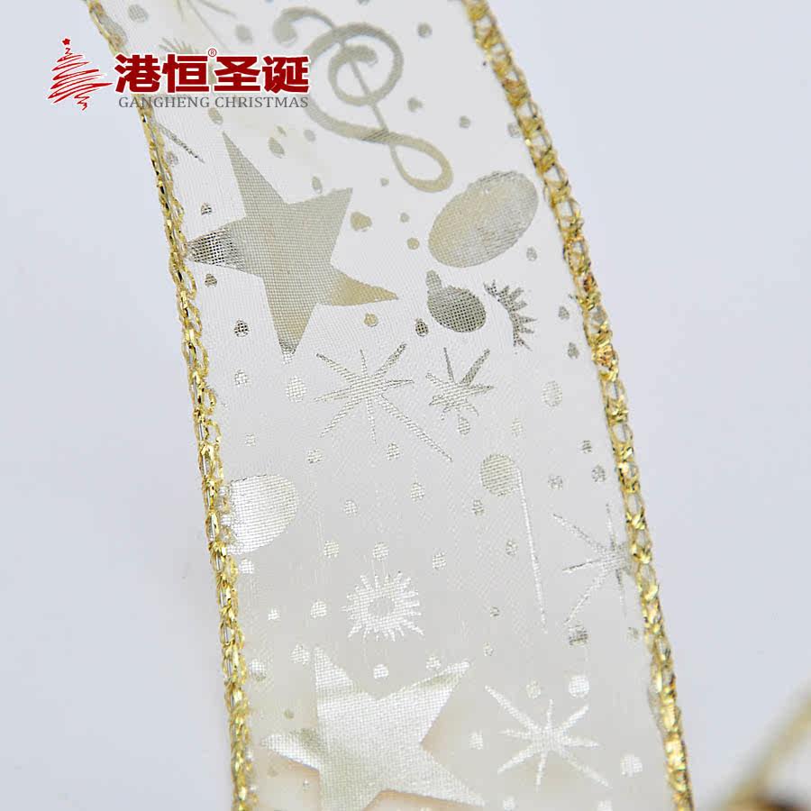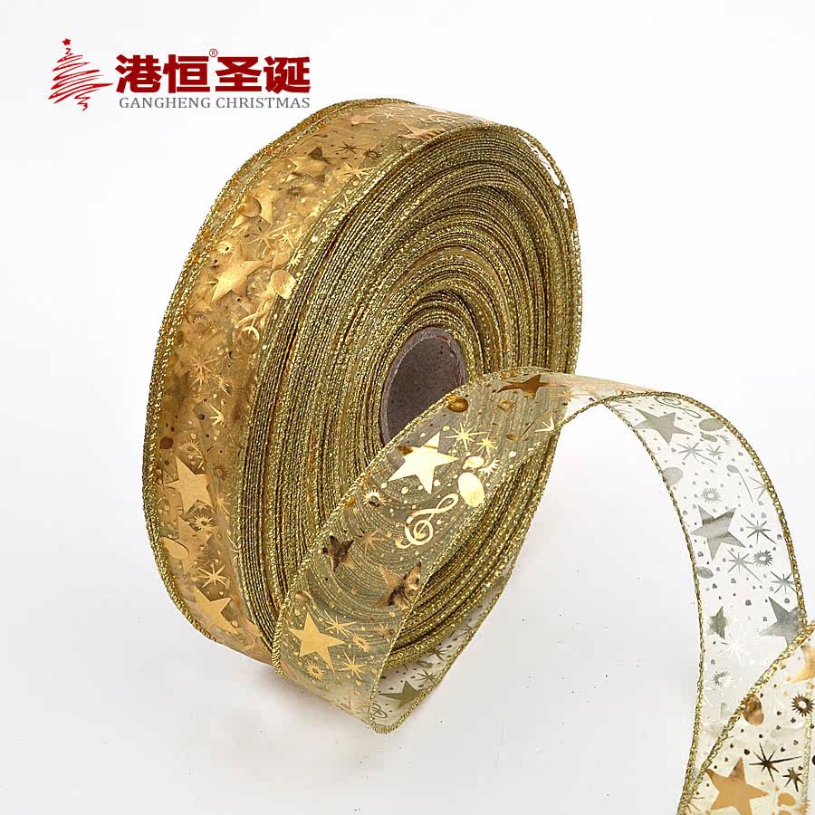 港恒圣诞节装饰品 3.8*200cm金色烤边圣诞树装饰丝带(多图随机)