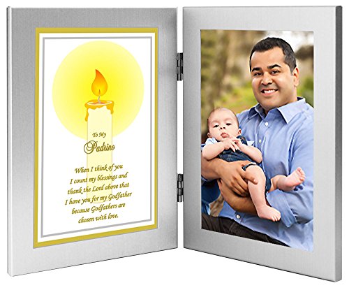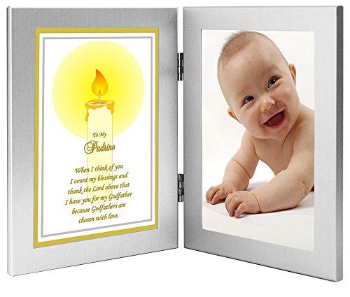 -. Binding : Baby Product -. Brand : Poetry Gifts -. Color : Silver -. Feature : Padrino (Godfather in Spanish) will love this keepsake from his Godson or Goddaughter / Two attached 4x6 inch frames - left frame contains p - right frame has area for a 4x6 inch photo / Personalize this Godfather gift by inserting a standard 4x6 photo or part of any larger photo / Brushed silver metal frame with black velour backing - tabletop display / P appears in Product Description -. IsAdultProduct : 0 -. Label : Poetry Gifts -. Manufacturer : Poetry Gifts -. Model : poetrygift-70-006 -. MPN : poetrygift-70-006 -. PackageQuantity : 1 -. PartNumber : poetrygift-70-006 -. ProductGroup : Baby Product -. ProductTypeName : BABY_PRODUCT -. Publisher : Poetry Gifts -. Size : 4x6 frames -. Studio : Poetry Gifts -. Title : Godfather Gift "To My Padrino" From Godchild - Baptism, Christening or Christmas Gift - Add Photo