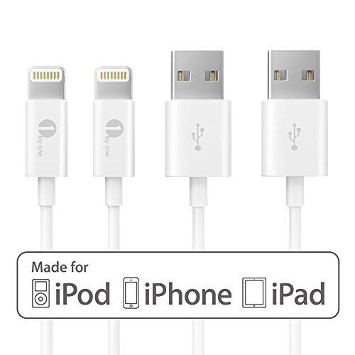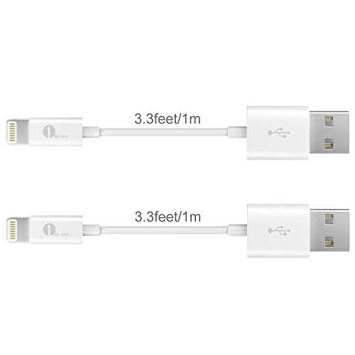 1byone 2-Pack lightning cable 3.3ft/1m, MFI Certified Lightning to USB Cable for iPhone 7 7 Plus 6s 6 Plus 5s 5c 5, iPad mini, iPad Air, iPad Pro, iPod touch 6th Gen / nano 7th Gen, White