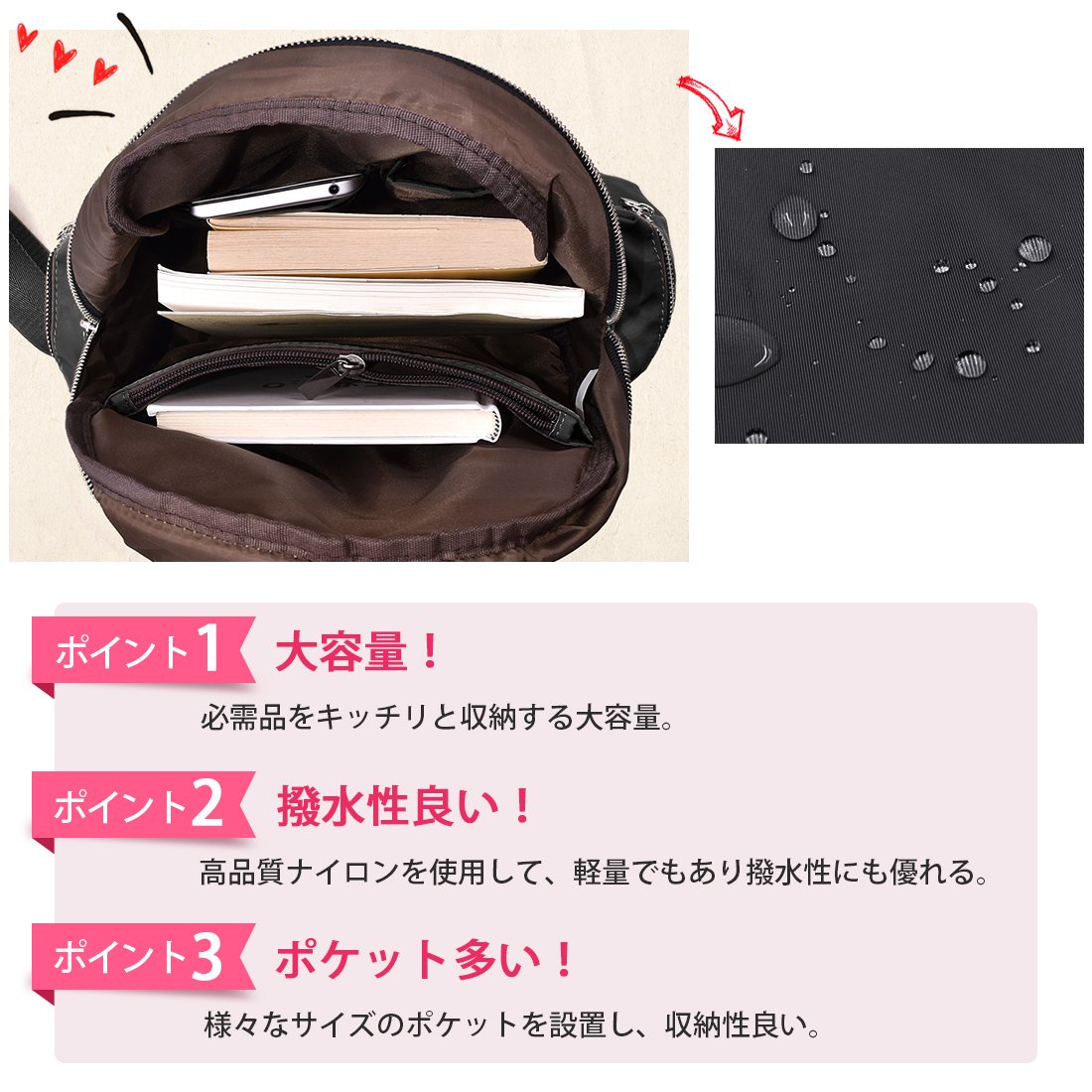 Although it is a fashionable item, I finished plumply into a feminine using a shiny nylon material, which is difficult to take in casual and seems to be too casual.