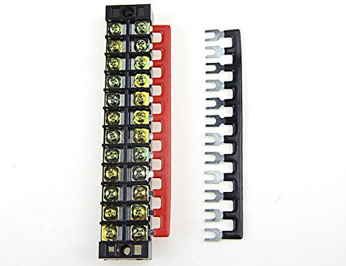 XLX 12pcs ( 6 Set ) 600V 25A 12 Positions Double Row Screw Terminal Strip and 400V 25A 12 Positions Red / Black Pre-Insulated Terminal Barrier Strip