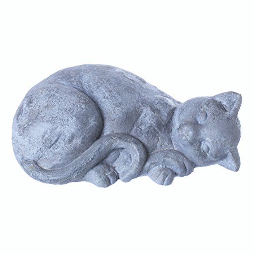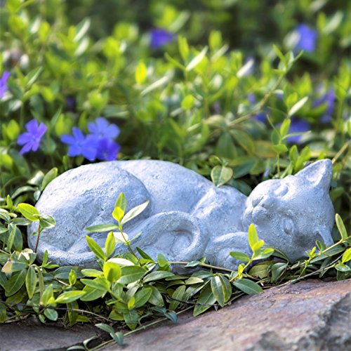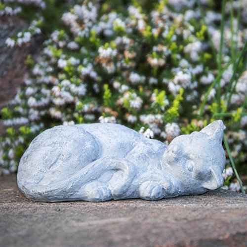 Cat Statue Sleeping Kitten Indoor Outdoor Grey Stone Finish