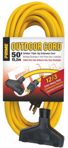 Prime Wire & Cable EC600830 50-Foot 12/3 SJTW Triple-Tap Extra Heavy Duty Outdoor Extension Cord, Yellow