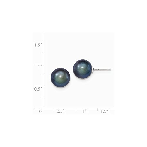 Solid 925 Sterling Silver 10-11mm Black FW Cultured Round Simulated Pearl Stud Earrings