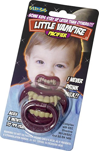 -. Binding : Baby Product -. Brand : Billy Bob Teeth -. Department : unisex-baby -. Label : Billy Bob Teeth -. Manufacturer : Billy Bob Teeth -. ProductGroup : Toy -. ProductTypeName : BABY_PRODUCT -. Publisher : Billy Bob Teeth -. Studio : Billy Bob Teeth -. Title : Little Vampire Infant/Toddler Pacifier