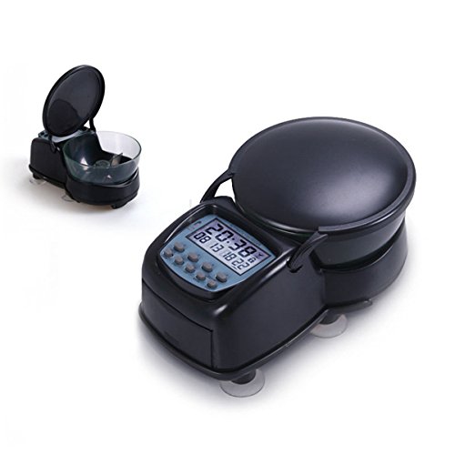Studio : Thailand Publisher : Thailand Binding : Misc. Product Description Feature: a-Feed fish 1-4 times each day. Feeding time set free. a-Can adjust feeder to drop a specific amount of food. a-Can be set to feed fish from 1 up 99 days. a-Can be operated automatically or manually. a-Works with dry or loose flakes or pellets. a-Has a built in digital clock for accuracy. a-Low bettery indicator on LCD in addition to a flashing Red LED on control panel. a-Feeder can use tank air pump to help keep food dry in wet climates. a-You can DIY converted into a 1L fish food.(The following picture would shows to you.) a-Feeder has a patented door to keep moisture from contaminating food chamber and prevents clogging. a-When the set number of feeding days has ended a patented audible alarm will sound to warn the owner. a-Ideal for various sizes of aquarium with two options of placing the food feeder on acquarium: free standing or rim-mounted. a-Accurate volume. Each feeding will be based on setting a good weight, and can be accurate to 0.2g. Fish feeding amount from 0.2 g to 5 g once. a-Can help your fish eat at regular time, will not worry about its meal when you at work from now on. Product Attributes: Material: ABS Color: Black Quantity: 1 Pcs Volume: 215ml(about 80g) Size:100x150x70mm/3.94x5.91x2.76inch Fish Food Feeder SKU137765(ZW-82) SKU137853(ZW-66) SKU015941 SKU150575 Thumbnail Button Silica gel button Plastic button No button Silica gel button Set up feeding times Set 1-4 times a day Set 1-2 times a day Set 1-4 times a day Display LED Without LED LED Size(L x W x H ) 139x96x120mm (5.47x3.78x4.72inch) 121x83x112mm (4.76x3.27x4.41inch) 100x74x115mm (3.94x2.91x4.53inch) 96x150x75mm (3.78x5.91x2.95inch) Package Include: 1 x Automatic Aquarium Fish Feeder 0
