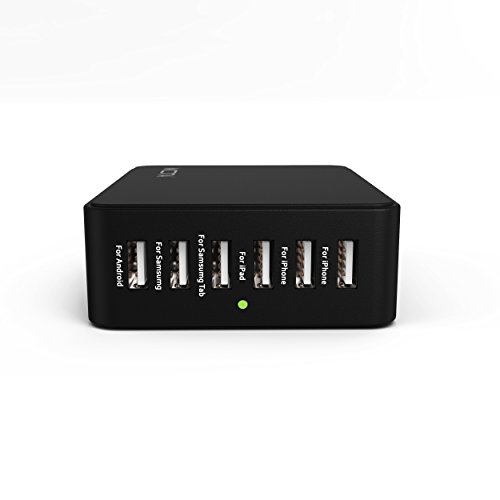 6 USB ports for different devices to ensure the fastest charging speeds for multiple devices, including iPhones, Samsung android phones, smartphones, tablets, portable speakers and more.