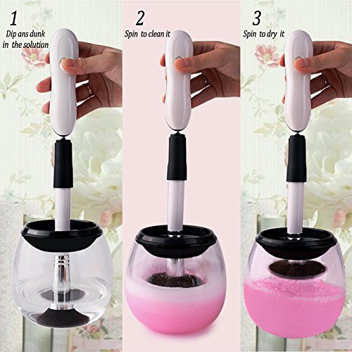 - Easy to Use - Just three quick steps to clean makeup brushes. 1. Dip and Dunk 2. Spin to Rinse 3. Spin to Dry. Save you time, energy and keep your makeup brushes clean on a regular basis.