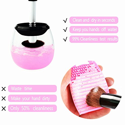 - Quick Cleaning - The makeup brushes cleaner machine can cleans and dries your makeup brush thoroughly in just a couple of seconds! Get rid of the bacteria clinging to your makeup brushes!