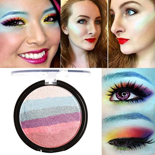 -. Feature : Point: soft durable, comfortable touch / Ingredients: vanilla powder shimmer. / Perfect for both professional Salon or personal use.Professional makeup or daily. / High quality ingredients with silky shine color, can last for all day long. / Package Content: 1PC Rainbow Highlight Eyeshadow palette