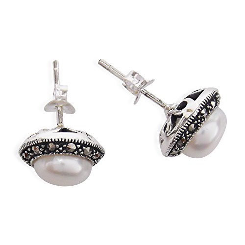 Capture the essence of feminine elegance in these earrings. Cultured freshwater white pearls nestled on .925 sterling silver and surrounded with sparkling iron pyrite for a sophisticated look. PLEASE NOTE: The handcrafted nature of this product will produce minor differences in design, sizing and weight. Variations will occur from piece to piece, measurements may vary slightly.AERAVIDA works directly with gifted and talented Artisans from all over the world. At the core of our philosophy is fair trade and fostering a sustainable future for our Artisans.