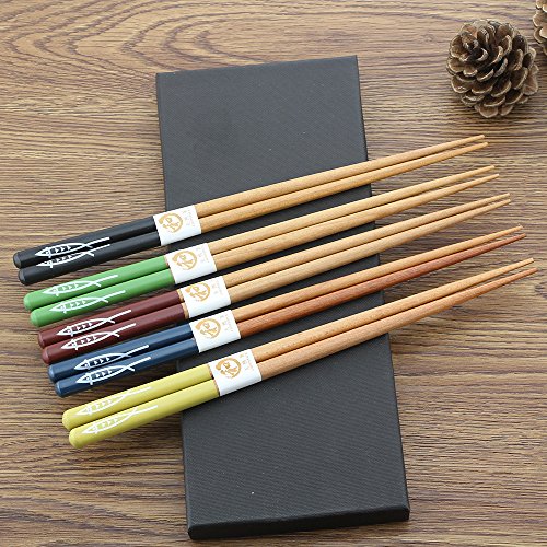 FEATURES : ★ Product Name: Reusable Wooden Chopsticks ★ Natural Material: Hard Beech Wood ★ Colors: 5 pair with different colors are very convenient and attracted during the eating time ★ Style: Japanese Style ★ Size: 9inches/ 22.5cm ★ Package: 5 Pairs/set in a nicely giftbox ★ Applicable People: Moderate size fits both adults and children ★ How to Clean: Hand wash is highly recommend. Put chopsticks in a cold or warm water, then wipe with soft cloth. Please DO NOT keep them in water or under sunshine for long time.