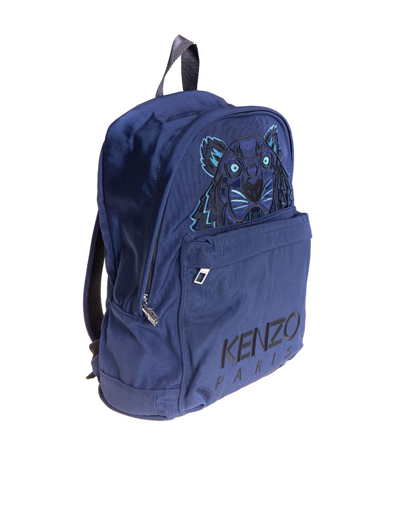 Black and light blue embroidery on the front