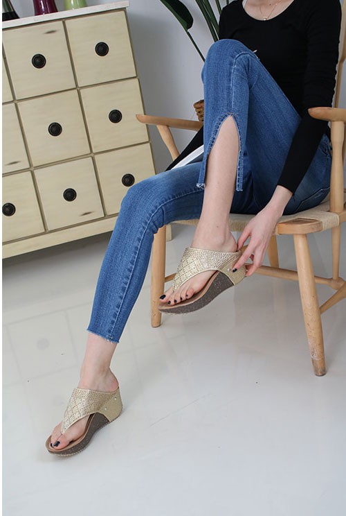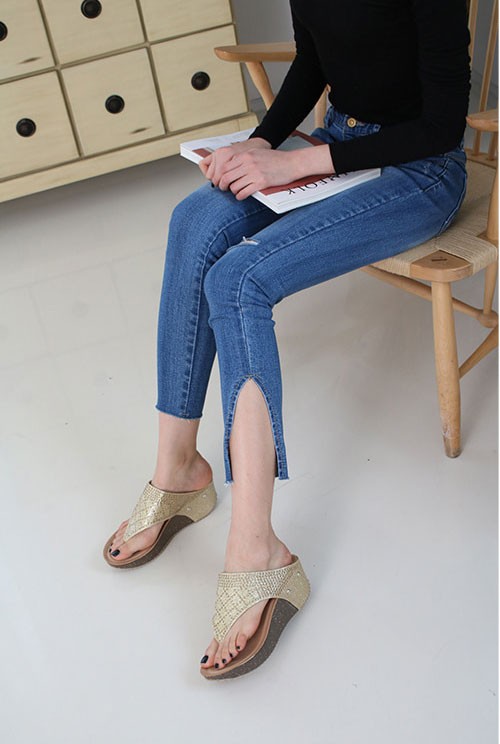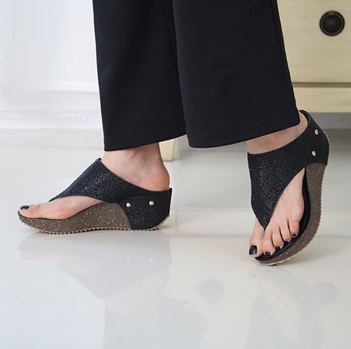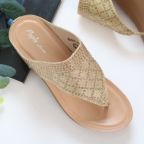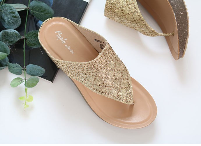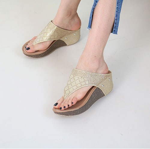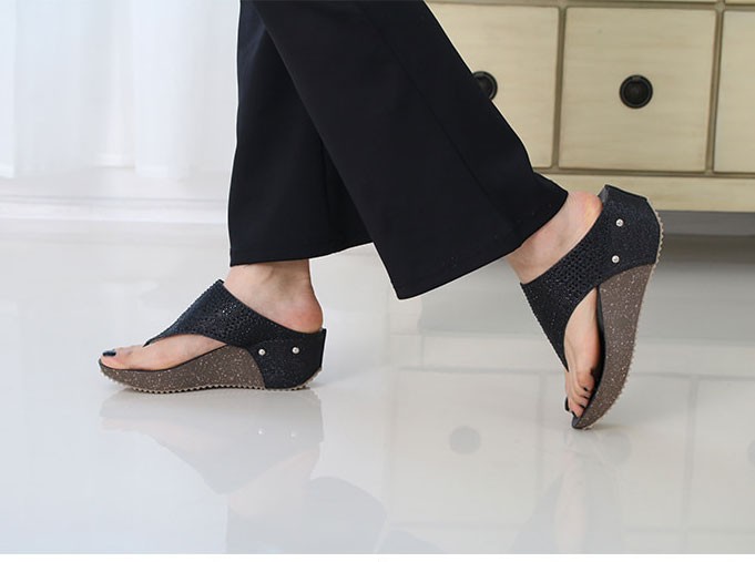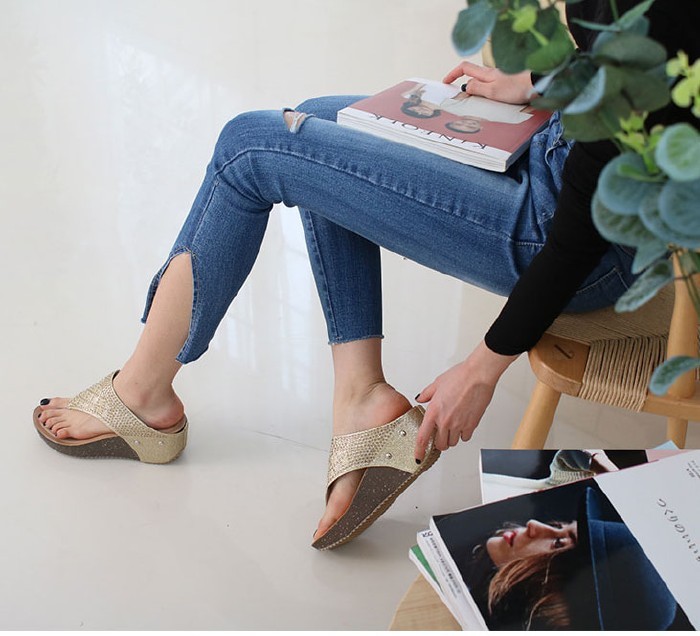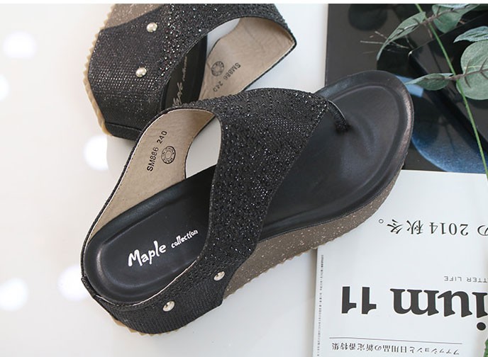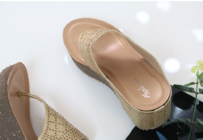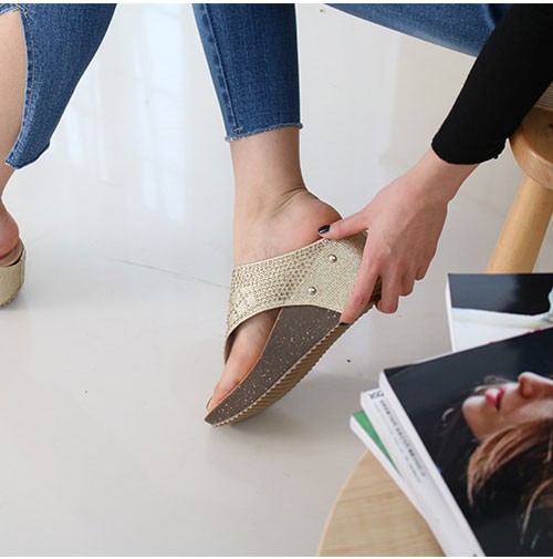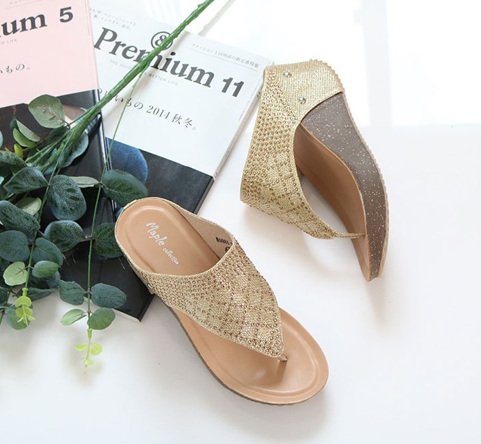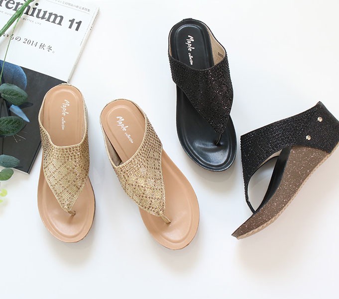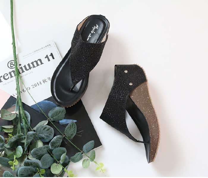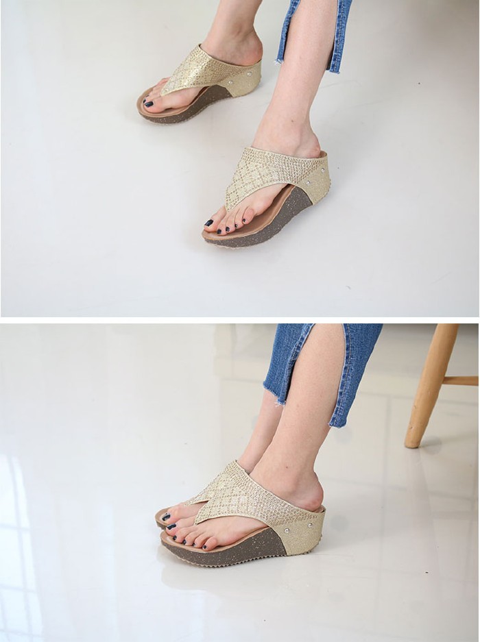 商品名:サンダル レディース トングサンダル キラキラ ビジュー ウェッジヒール ウェッジソール 2018 春 ファッション 靴 婦人靴