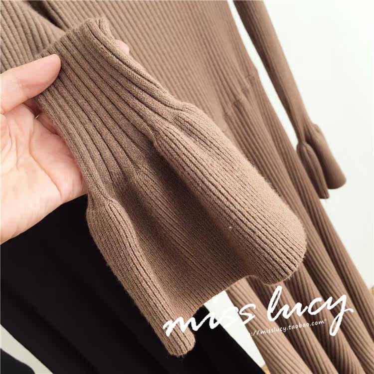 裙子是条纹的纹理,显瘦既视感;喇叭袖口设计,甜美又不失气质