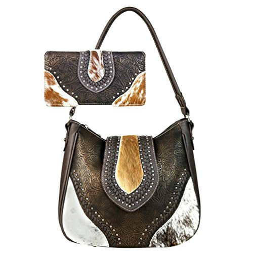 -. Brand : Montana West -. Department : womens -. Feature : Trinity Ranch by Montana West Hobo Handbag + Wallet Set / Genuine Hair on Partial Leather & Faux Leather Handbag / Single Flat Strap, Magnetic Flap, Zip Closure / Purse Size: 13.5" x 4.25" x 10" (10" drop) / Wallet Size: 7.25 x 1.25 x 4.25 -. ProductGroup : Shoes -. ProductTypeName : HANDBAG -. Title : Trinity Ranch by Montana West Handbag Wallet Set Hair on Leather Hobo Bag TR56-8291