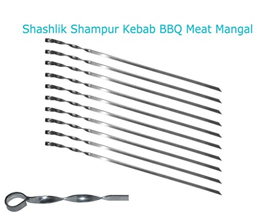Set of 10 Stainless Steel Skewers for Shashlik Shampur Kebab BBQ Meat Mangal