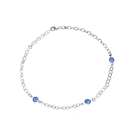 -. Title : Sterling Silver Rhodium Plated Rhodium Fancy Blue Cubic Zirconia Station Anklet