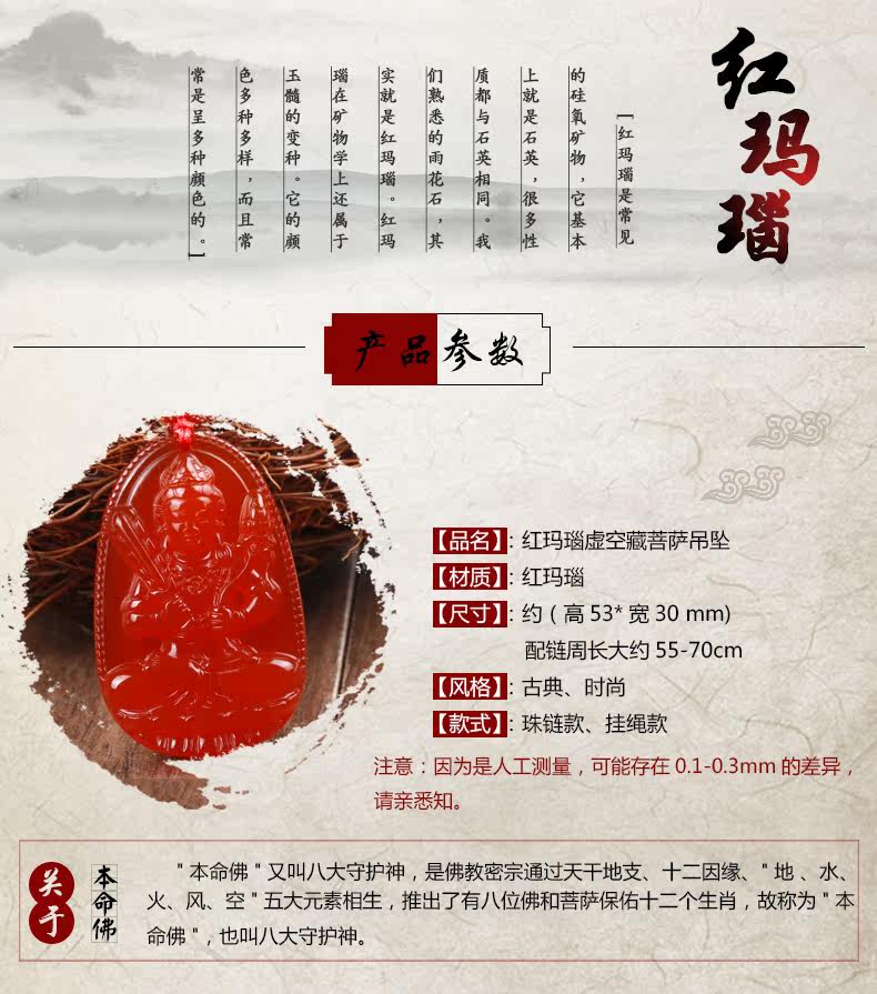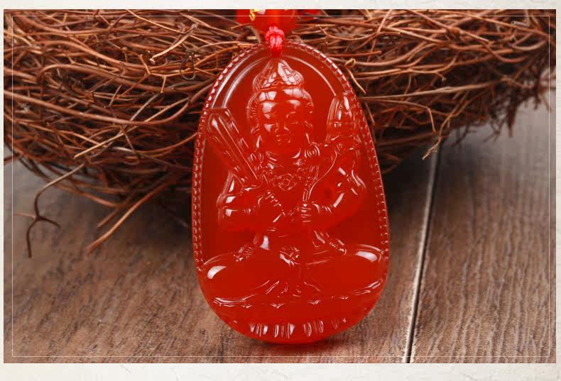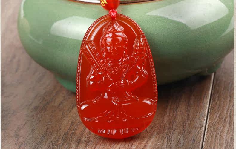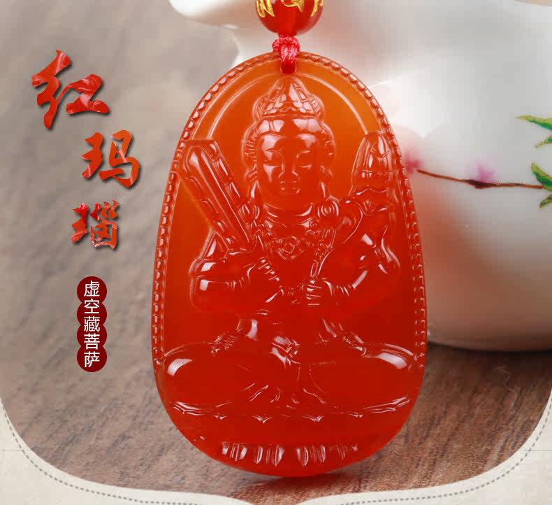 开光红玛瑙虚空藏菩萨吊坠生肖属牛虎守护神本命佛项链