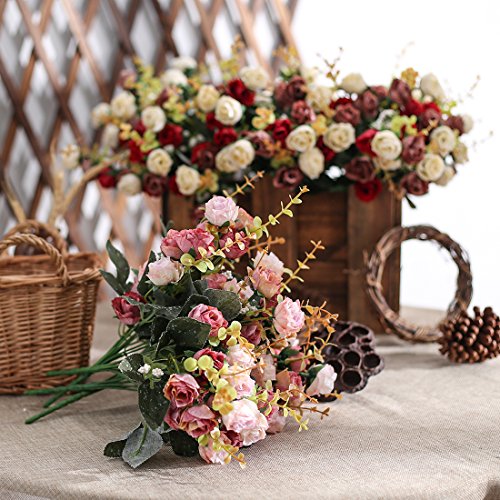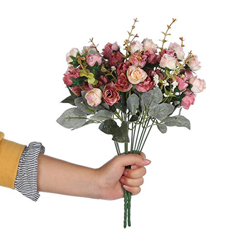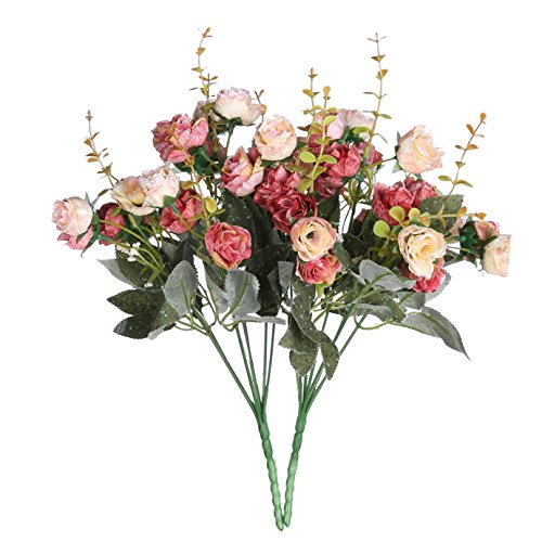 Veryhome 2pcs Artificial Silk Fake Flowers Rose Floral Bouquet for Wedding Home Party Decor (Pink Coffee)