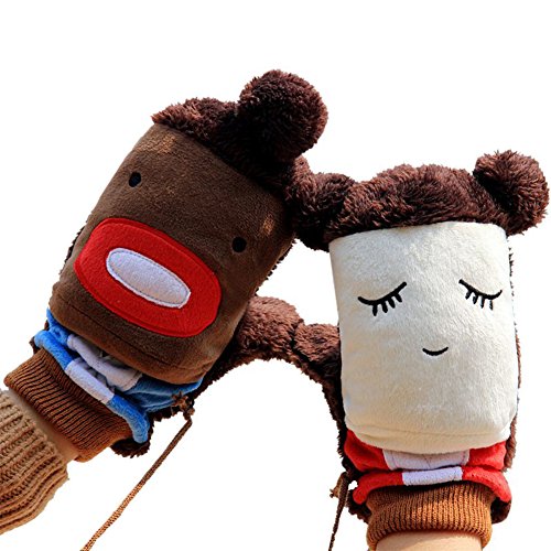 (e-youth)/Accessories/Cold Weather Accessories/DIRECT FROM USA/Women Girls Winter Gloves Cute Cartoon Lovers Mittens with Warm Plush Lining