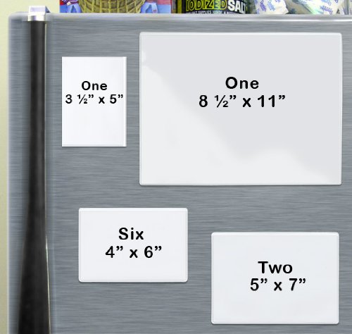 -. Brand : StoreSMART® -. Color : Clear -. Feature : 8-gauge crystal clear vinyl fronts, full magnetic backs. / Variety 10-Pack: six 4" x 6" pockets, two 5" x 7" pockets, one 3 1/2" x 5" pocket, and one 8 1/2" x 11" pocket. / Open on the long side. / Works with dry erase markers. / Proudly manufactured in the USA. -. Label : StoreSMART® -. Manufacturer : StoreSMART® -. Model : H32MAGKIT-1 -. MPN : H32MAGKIT-1 -. PackageQuantity : 10 -. PartNumber : H32MAGKIT-1 -. ProductGroup : Kitchen -. ProductTypeName : KITCHEN -. Publisher : StoreSMART® -. Studio : StoreSMART® -. Title : StoreSMART® - Full-Back Magnetic Pockets for Refrigerator or Locker - Variety 10-Pack - H32MAGKIT-1