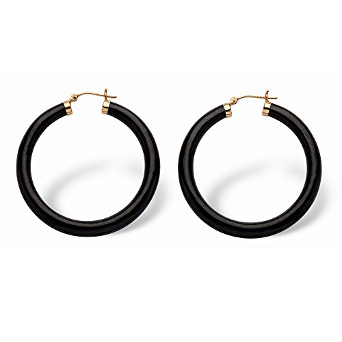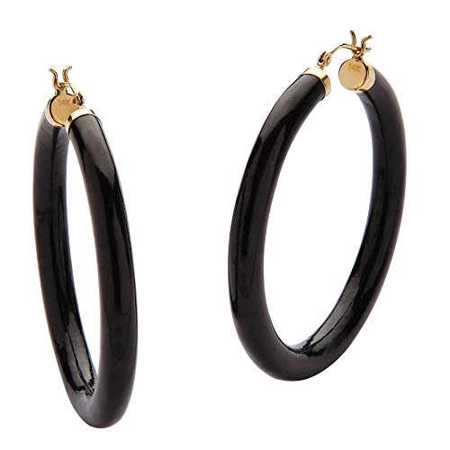 Let the exotic look of genuine black jade and gold add a little bit of sassy elegance to your everyday wardrobe. Fashion-forward and fun to wear, you'll love the 14k yellow gold accents and perfect 1.75" diameter of these stylish hoops. - 56020Feature