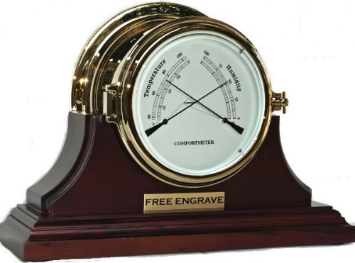 -. Title : 7" Brass Porthole Thermometer Hygrometer Comforter with Stand