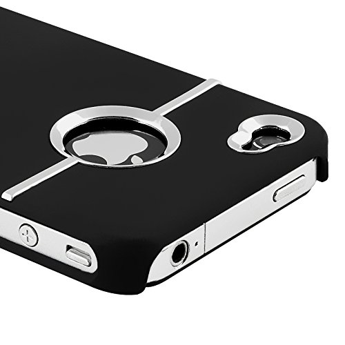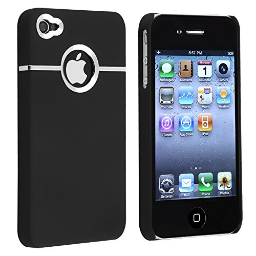 SANOXY deluxe black case cover w/chrome for iPhone 4 4g 4s AT&T Verizon sprint. Allows easy access to all buttons, controls and ports.