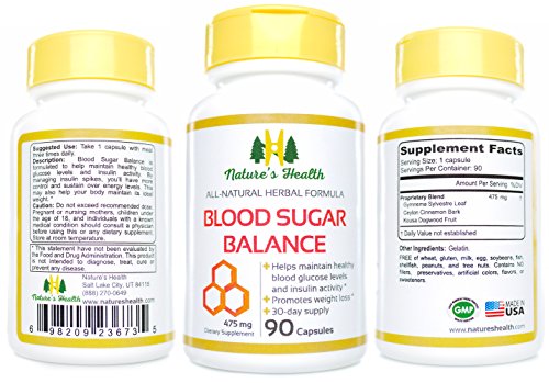 -. Feature : ✅ BLOOD SUGAR SUPPLEMENT: Blood Sugar Balance is a supplement to a diet intended for the contribution to the maintenance of healthy blood sugar management. The ingredients in this formulation were included to help you feel your best and support healthy pancreas function. / ✅ SUPPORTS HEALTHY BLOOD SUGAR, METABOLISM AND ENERGY: The natural ingredients in Blood Sugar Balance can be used as part of a diet to help reduce fatigue, boost metabolism and support immune health. This blood sugar management supplement helps maintain desirable health and support blood sugar levels already within the normal range. / ✅ WEIGHT MANAGEMENT: By being able to manage a sudden spike of blood sugar, your body will be able to keep crashes away and help it keep steady energy levels throughout the day. This may also help your body maintain a healthy overall weight. / ✅ ALL-NATURAL ALTERNATIVE: Nature's Health products are crafted in our Salt Lake City facility and all of our products are proudly Made in the USA by a team of nutrition and botanical experts. Nature's Health Blood Sugar Balance is backed by our Pure Promise in which we do not use fillers, artificial coloring, flavoring, or preservatives offering you nothing but 100% of our All-Natural Formulation. / ✅ 100% LEGENDARY SATISFACTION GUARANTEE: We are so confident that you will be satisfied with your results or your money back, guaranteed. You have nothing to lose and everything to gain. What are you waiting for? Try Nature's Health Blood Sugar Balance today!