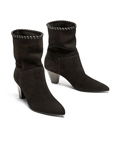 Product Description Black leather ankle boots. Extra soft mid-calf leg with topstitching at the top. Pointed toes. Faux wooden heels. Heel height of 5.5 cm. / 2.1 inches Official brand size equivalence for Women Shoes. Size 35 | USA 5 ? ?|?UK 2 Size 36 | USA 6 ? ?|?UK 3? Size 37 | USA 6.5 |?UK 4? Size 38 | USA 7.5 |?UK 5? Size 39 | USA 8 ? ?|?UK 6 Size 40 | USA 9 ? ?|?UK 7? Size 41 | USA 10 ?|?UK 8? Size 42 | USA 11 ?|?UK 9? Size 43 | USA 12 ?|?UK 10 0