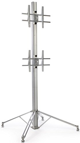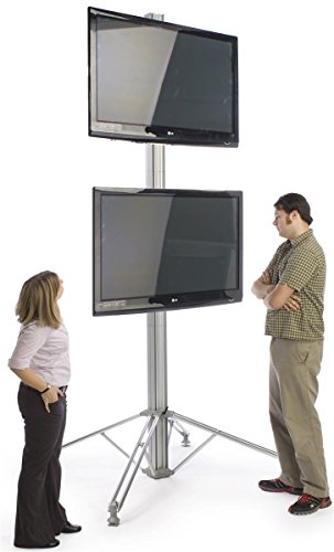 -. Binding : Electronics -. Brand : Displays2go -. Color : Silver -. Feature : Heavy duty stand holds 1 television up to 84-inches wide and 142-lbs. or 2 televisions 40 to 52-inches wide weighing up to 80-lbs each. / Televisions can be displayed vertically or horizontally. / TV stand features floor levelers on each of the extended legs to help stabilize the stand on uneven surfaces. / Components break down into small pieces to fit into a wheeled travel case. / Displays2go SKU#: LCD1POLE -. Label : Displays2go -. Manufacturer : Displays2go -. Model : D2G15588 -. MPN : D2G15588 -. PackageQuantity : 1 -. PartNumber : D2G15588 -. ProductGroup : Speakers -. ProductTypeName : AV_FURNITURE -. Publisher : Displays2go -. Studio : Displays2go -. Title : 10' Floor Stand for 2 Flat-Screen TV Monitors, VESA-Compatible Brackets Fit Most Brands, Includes Storage Case - Silver