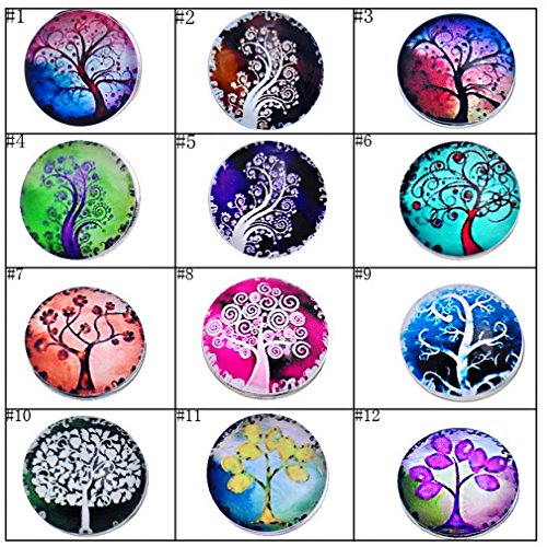 Souarts Mixed Snap Button Jewelry Charm 18mm Pack of 12pcs (Life Tree)