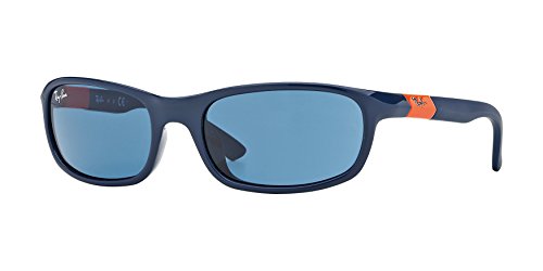Ray-Ban Junior Sunglasses style RJ9056S is a rx-able rectangular plastic wrap with beveled temples. The RJ9056S features a saddle nose bridge for extreme comfort. The Ray-Ban logo is engraved on the contrast color detailing on the temples. Ray-Ban Junior Sunglasses have scratch/impact-resistant lenses that provide 100% UV protection.