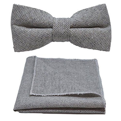 Light grey bow tie and pocket square set in a premium stonewashed woven fabric. Bow tie is adjustable to a neck size of up to 19" with metal hook eye fastening. Pocket square measures approximately 25cm x 25cm Forms part of the King Priory Highland Weave collection with matching tie also available. 0 |