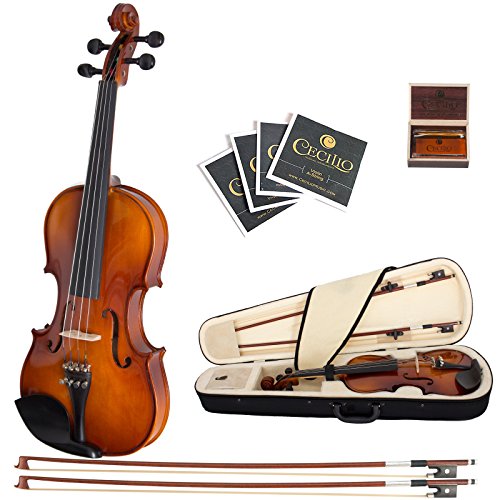 Studio : Cecilio Musical Instruments Publisher : Cecilio Musical Instruments Binding : Electronics Product Description Teacher approved CVN-300 orchestra violin is perfect for the beginner to intermediate violinist. It features hand-carved solid spruce top, hand-carved maple back and sides finished with beautiful antique varnish and inlaid purfling. This violin is fitted with ebony fingerboard, pegs, chin rest, and tailpiece with 4 detachable nickel plated fine tuners. Violin accessories include 2 (two) Brazilwood bow with ebony frog and unbleached genuine Mongolian horsehair, a lightweight form fitting hard shell case with pockets and strap (making it convenient to carry to school or orchestra), quality rosin cake, violin bridge and an extra set of violin strings. Buy with confidence as it comes with a 1- year warranty against any manufacturer's defects. 0