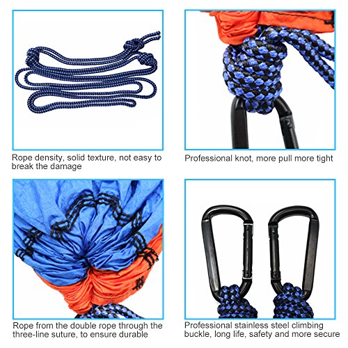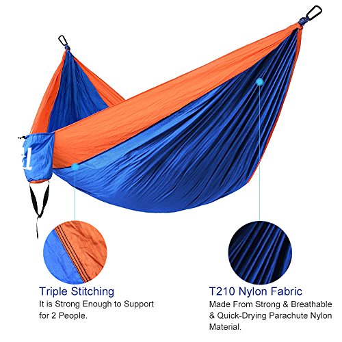 Secure and Durable: Made from ultra-strong breathable parachute T210 nylon and triple stitched, it is strong enough to bear even two normal-weight adults. Our outdoor double hammock provides comfortable support for up to 500lbs.