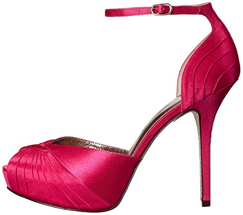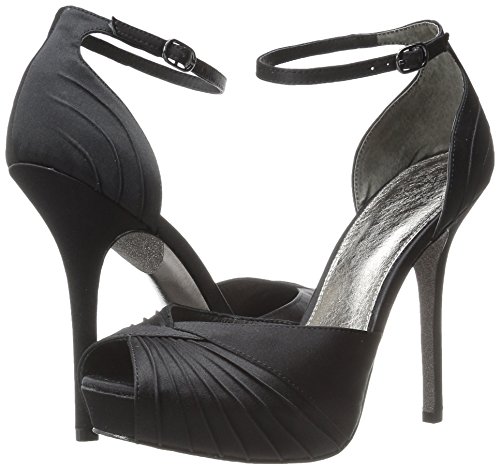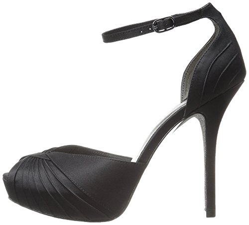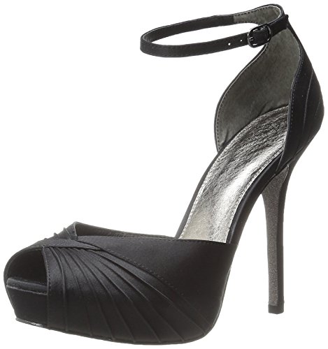 Product DescriptionPeep toe platform pump detailed with pleated satin and a delicate ankle strap.0
