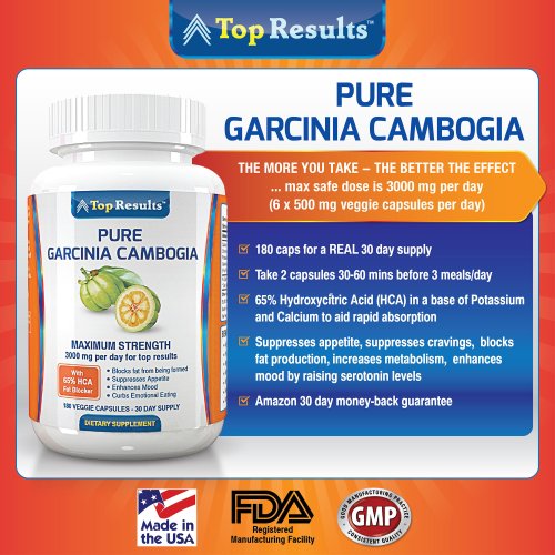 -. Binding : Health and Beauty -. Brand : Top Results -. EAN : 0045635687929 -. Feature : 100% Pure Garcinia Cambogia Extract with HCA 180 Caps 30. 90 Day supply.Potent fat burner with only natural and healthy ingredients. NO fillers, binders, artificial ingredients or other compounds. / TOP RESULTS. Easy weight loss Garcinia pills that have a powerful appetite suppressant properties, Garcinia Cambogia has been shown to be a mood ENHANCER because it provides an increase in Serotonin. Garcinia Cambogia blocks the enzyme that converts sugar into fat, increases your serotonin levels (enhancing your mood) and suppresses your appetite - creating an exceptionally effective weight loss supplement. / Our capsules contain only the very best weight loss ingredients available. Made in the USA in an FDA approved manufacturing facility. / NO SHIPPING COSTS WHEN YOU BUY over $35. FAST ACTING GARCINIA PILLS / Customer Service that cares!! New Improved formula. FREE EBOOK SENT TO WITHIN ONE WEEK -. Label : Top Results -. LegalDisclaimer : *The product statements on this page have not been evaluated by the FDA. This product is not intended to diagnose, treat, or cure any disease. -. Manufacturer : Top Results -. MPN : 2013-2 -. PartNumber : 2013-2 -. ProductGroup : Health and Beauty -. ProductTypeName : HEALTH_PERSONAL_CARE -. Publisher : Top Results -. Studio : Top Results -. Title : Pure Garcinia Cambogia Extract - 180 Pills For A REAL 30 Day Supply. Potent Fat Burner FAST ACTING CAPSULES And Appetite Suppressant With 65% HCA (Hydroxycitric Acid) Plus Potassium And Calcium To Aid Absorption. Cleanse And Slim Down with Our Super Diet Pills -. UPC : 045635687929