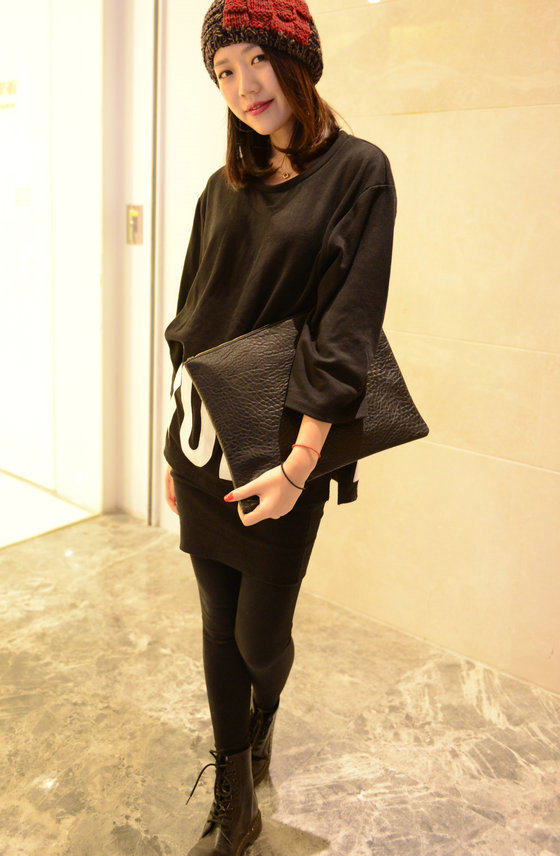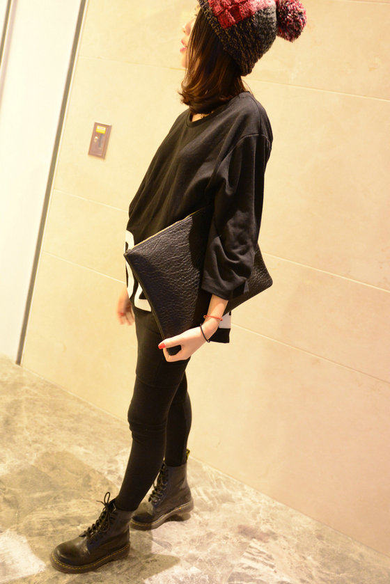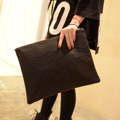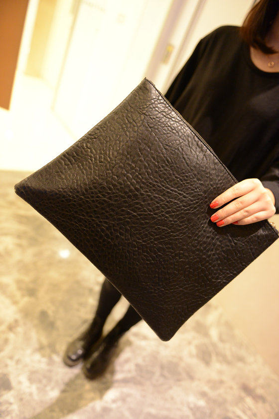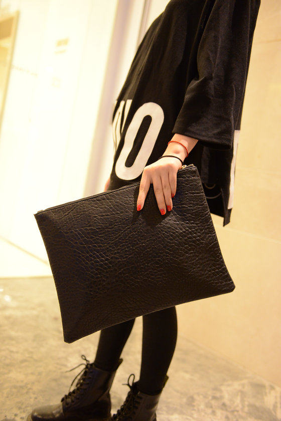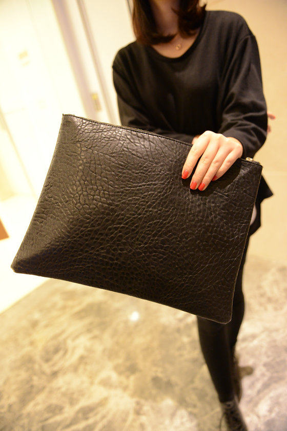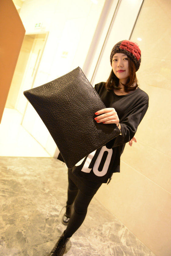 新款欧美时尚休闲手抓包 韩版简约纯黑色信封包大手拿包女包