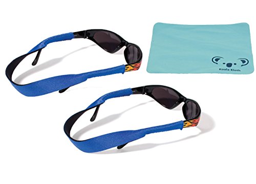 3 ITEM BUNDLE: 2 Croakies Kids Royal Glass Retainers and 1 Koala Microfiber Cleaning Cloth | Compatible with sunglasses, eyeglasses, reading & computer glasses, and sports goggles & eyewear