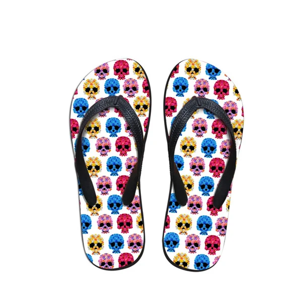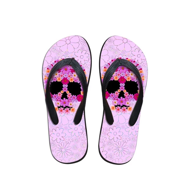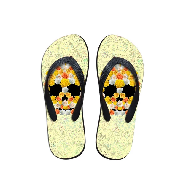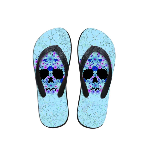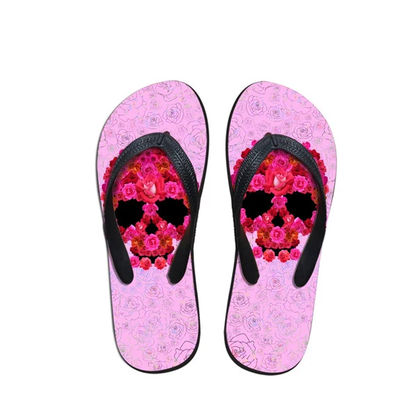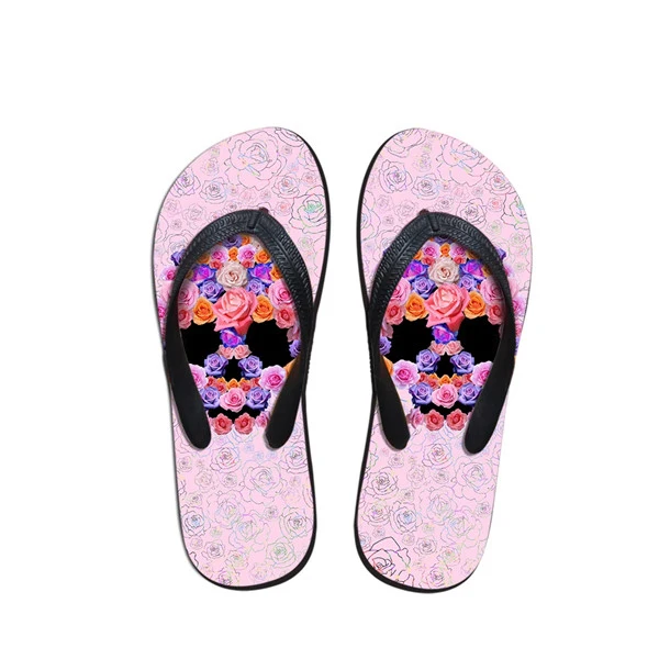 Pattern:3D Skull Floral Pattern Women Summer Slippers