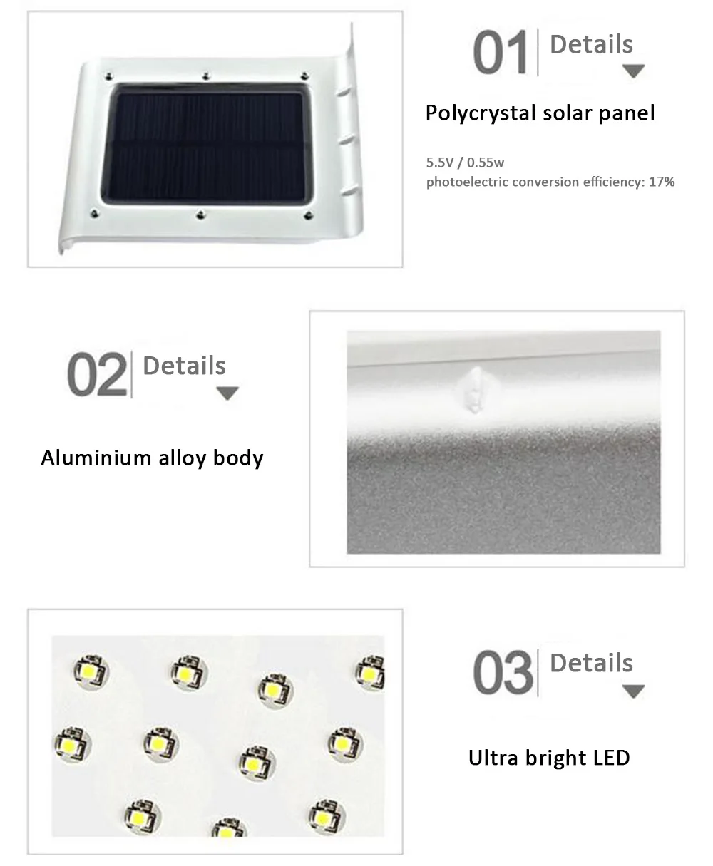 Package Contents: 1 x Solar Infrared Motion Sensor Lamp, 1 x English user manual, 1 x Installation Package