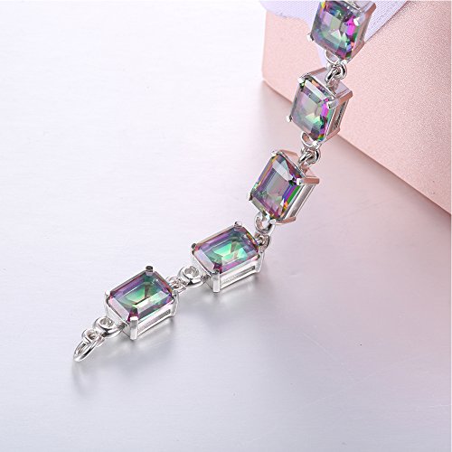 -. Feature : 1.Material: AAA level Multicolored Rainbow topaz / emerald / ruby ,925 sterling silver,18K white gold pleated / 2.Excellent quality, 18K white gold plated 925 sterling silver won't change color or get dark / 3.Fit For Weddings, Proms, pageants, parties, birthdays, or any other special occasion. / 4.Length: 7.68" . Gift Ready, Packaged In Elegant Jewelry Gift Box. / 5.To look more similar products, please click the brand name Aurora Tears