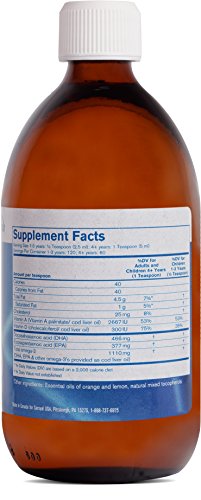 Cod liver oil formula with vitamins A and D supports cognitive function and brain and nerve development in children. Supports healthy bones, teeth, eyes, and skin. Provides 466 mg of DHA and 377 mg of EPA per teaspoon. Provides 2667 IU of vitamin A and 300 IU of vitamin D per teaspoon. Comes in a delicious natural citrus flavor. Finest Pure Cod Liver Oil is a source of omega-3 fatty acids, which promote proper eye development, visual acuity, and pre- and postnatal brain development.Feature