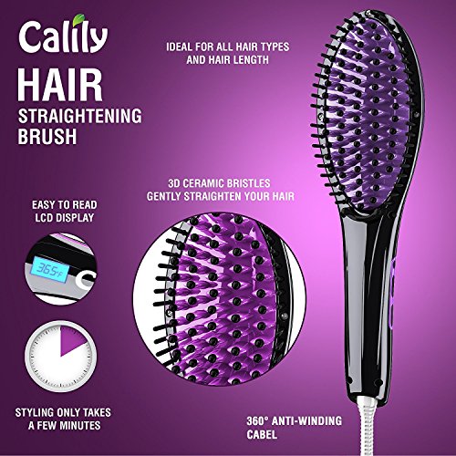 Calily Heated Hair Straightening Brush - Amazingly Fast and Easy Hair Straightener - Get the Perfect Hairstyle in Minutes