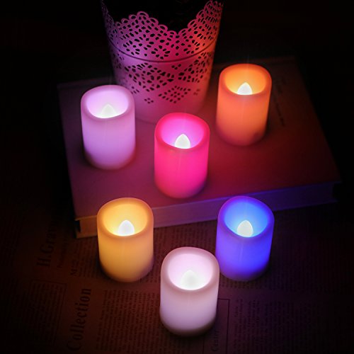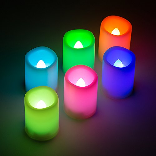 Kohree Set of 6 Flameless LED Color Changing Votive Candles with Remote and Timer, Battery-Included, Melted Edge, Multiple Colors