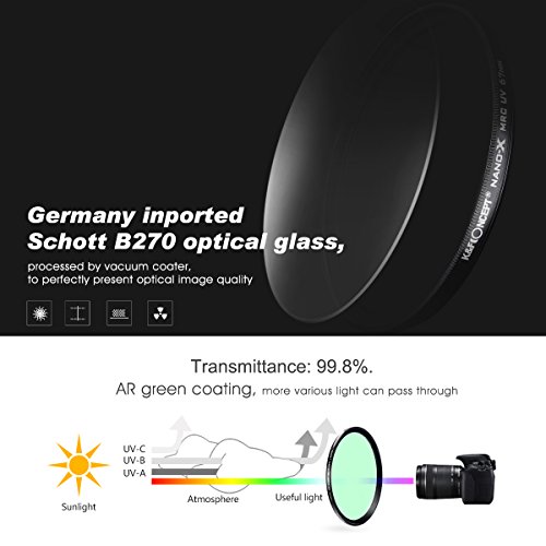 Protects your lens from dirt, scratches, fingerprints, and accidental damage.Reduce haze and improve contrast to your video and digital images by minimizing the amount of ultraviolet (UV) light.
